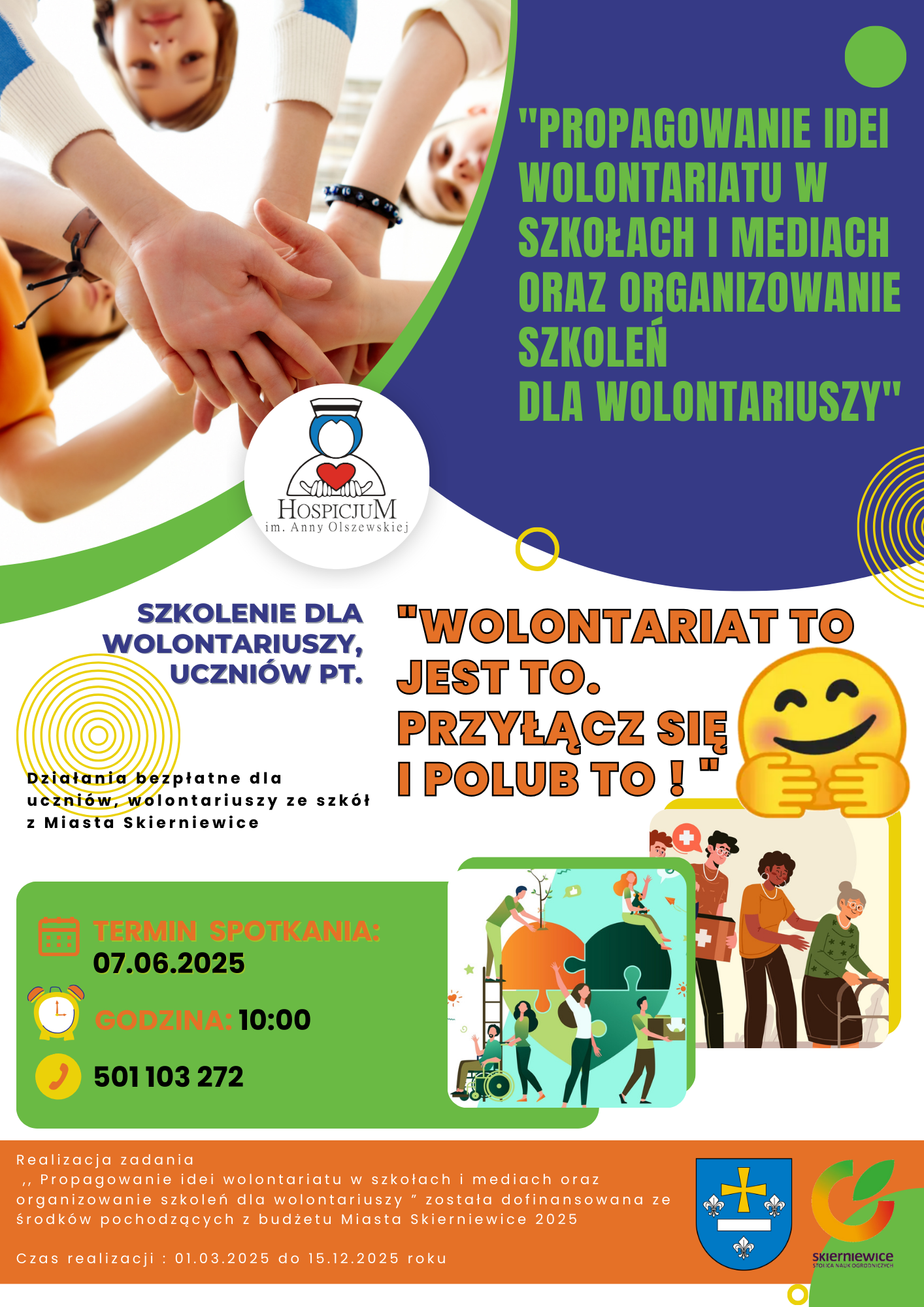 Propagowanie idei wolontariatu w szkołach i mediach oraz organizowanie szkoleń dla wolontariuszy