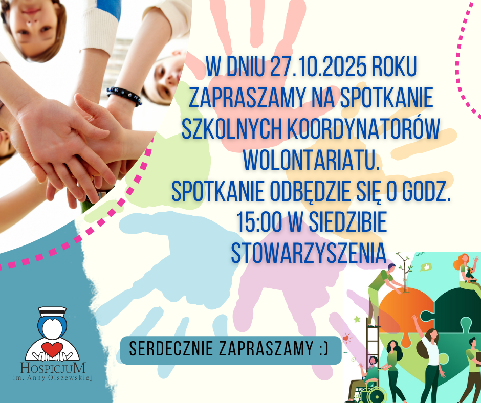W dniu 27.10.2025 roku zapraszamy na spotkanie Szkolnych Koordynatorów Wolontariatu.