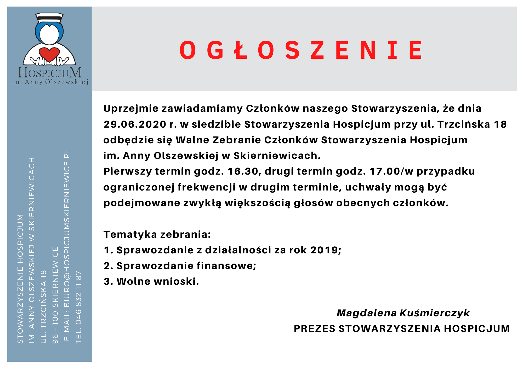 Ogłoszenie – Walne Zebranie Członków Stowarzyszenia Hospicjum