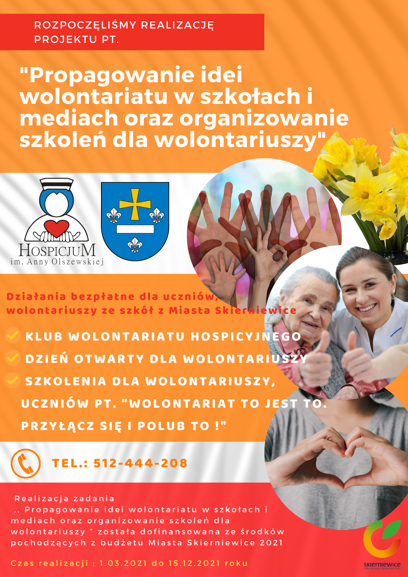 Realizacja zadania ,, Propagowanie idei wolontariatu w szkołach i mediach oraz organizowanie szkoleń dla wolontariuszy ” została dofinansowana ze środków pochodzących z budżetu Miasta Skierniewice 2021.